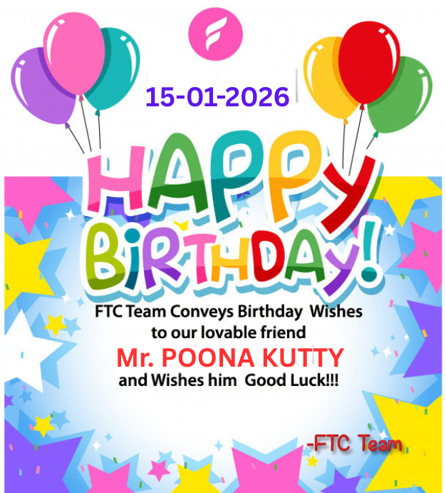 « Last post by FTC on Today at 12:03:37 AM »Friends Tamil Chat Team Conveys 🎁 Birthday (15-Jan-2026) wishes 🎁 to our lovable friend ⭐ Mr. POONA KUTTY ⭐ and wishes him Good Luck.