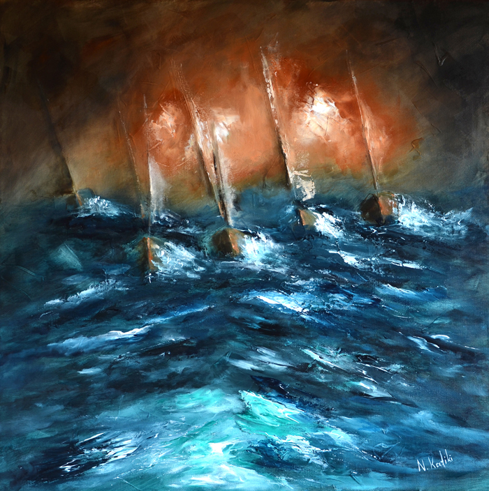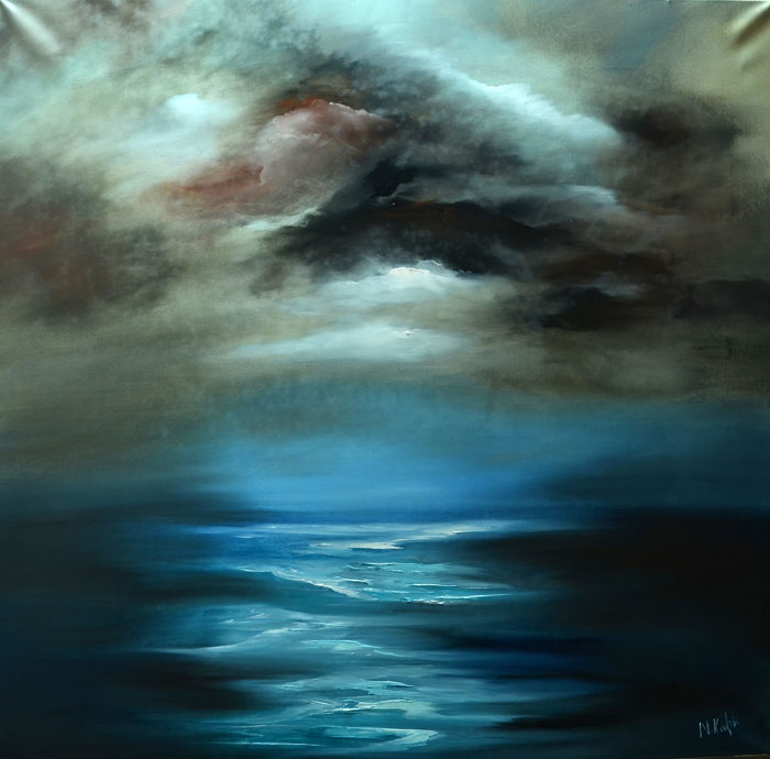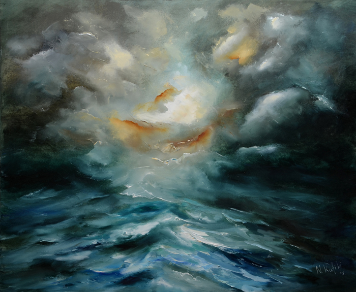 But regardless of the series each work belongs to, there are features and characteristics common to every painting, creating her unique personal style. The balance between light and shadow, cold and warm colors, the volumetric structure of the composition and the textured surface are some of the typical characteristics of her work, that create the impressive and powerful paintings.