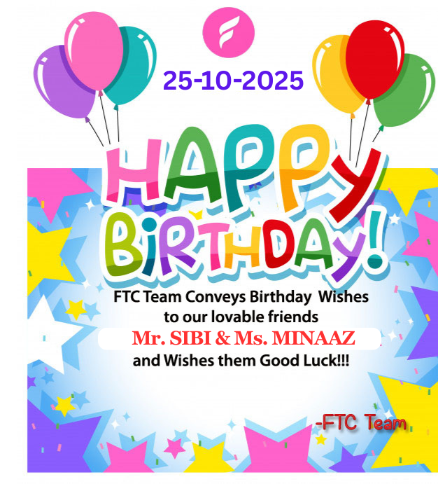 Friends Tamil Chat Team Conveys 🎁 Birthday (25-Oct-2025) wishes 🎁 to our lovable friends ⭐ Mr. SIBI and Ms. MINAAZ ⭐ and wishes them Good Luck