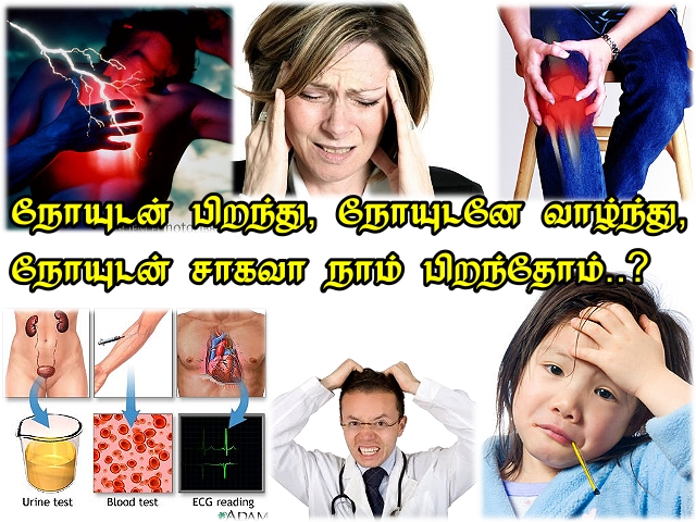 உடலில் கழிவுகள் தேக்கமே நோய், அதனை உடலே வெளியேற்ற எடுக்கும் முயற்சியே நோய் அறிகுறிகள், நோய் ஒன்றே ஒன்றுதான் ஆனால் அது வெளியேறும் முறைகளை பொருத்து அதன் அறிகுறிகள் பல தோன்றும், அந்த அறிகுறிகளை நோய் என்று நினைக்கும் ஆங்கில மருத்துவம் முதலில் மருந்துகளை கொடுத்து அந்த அறிகுறிகளை மறைக்க பார்க்கின்றது. ஆனால் இந்த ஆங்கில மருந்துகள் அனைத்தும் வியாதியை [அறிகுறியை] அப்போதைக்கு மறைத்து மட்டுமே வைக்கும் குணபடுத்த முடியாது.
