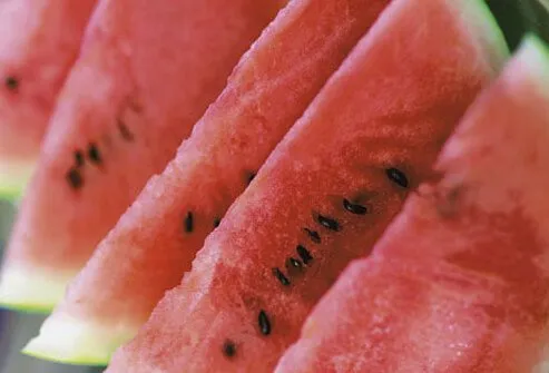 Foods that are high in water content take up more room in the gut, Bonci says. This signals the body that you've had enough to eat and leaves less room for other foods. Many raw fruits and vegetables are chock-full of water and nutrients, but low in calories. Watermelon is a great example. It's a rich source of the antioxidant lycopene and adds some vitamins A and C to your day, too.
