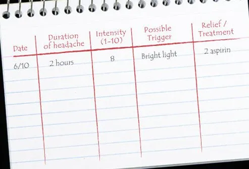 If you can identify your most common triggers, you may be able to cut off headaches before they start. The best way to accomplish this is through a headache diary. Keep a daily log of foods you eat, stressful events, weather changes, and physical activity. Whenever you have a headache, record the time it starts and stops. This will help you find patterns, so you can try to avoid your personal triggers.