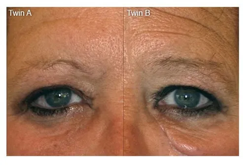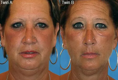 Twin B smoked half a pack a day for 14 years, while her sister never smoked. The loose skin under her eyes is typical for smokers, according to Bahman Guyuron, MD, of Case Western Reserve University. It's one of several visible signs  that tobacco byproducts inside your body are harming your appearance. Twin B also got more sun, damaging her skin from the outside, too.