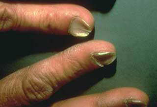 According to the NCBI, nails that are round as seen in the picture may indicate lung problems.