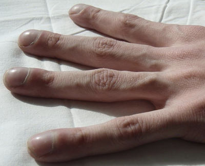 Nails that are bluish in color are often an indicator of a lack of oxygen to the extremities. This is why surgeons insist on patients removing any nail polish before undergoing anesthesia. Another possible diagnosis is lung problems, according to WebMD.