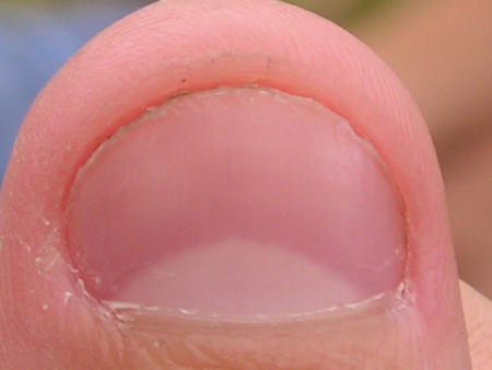 If your nails are white as seen in the picture, WebMD warns that it may indicate liver problems or hepatitis.