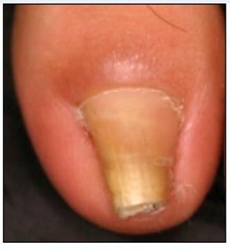 The NCBI warns that if any part of your nail looks similarly to the discolored, cracked nail in the image on the right, it may indicate that you have a fungal infection called onychomycosis.