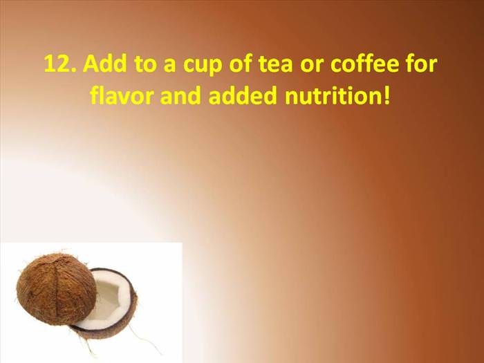 Re: ~ 15 Important and Healthy Uses for Coconut Oil! ~
