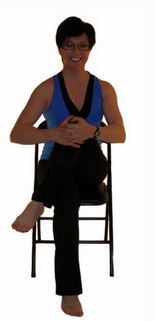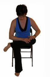 1. Work your left external rotators by again sitting on the chair, and crossing your left leg across your right thigh so your left ankle is resting upon it.