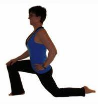 1. To stretch the left hip's flexor muscles, kneel on your left knee and extend your right foot out in front of you so that it creates a 90 degree angle. You can put a cushion, or something similar, under the knee if you find it uncomfortable.