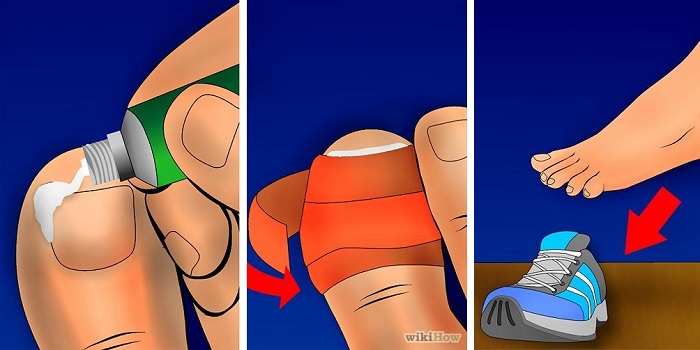 If the toe is already infected, use an infection-preventing ointment (such as Neosporin) on the infected area and bandage it. Avoid wearing socks or shoes when you’re home, because the area needs to breath.
