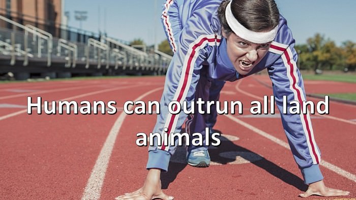 We may not be the fastest, but we can outrun any animals when given time. In fact, in some places in Africa, hunters simply chase their prey until it succumbs to exhaustion.