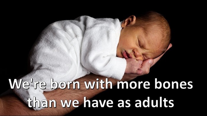 Did you know that when you are born, you have 300 bones in your body, but long after, the number drops to 206? Shortly after birth, many of these bones fuse together, becoming bigger, stronger bones.