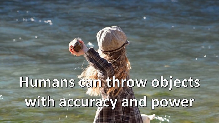 While many apes can throw with force, it's humans who can combine both force and accuracy. This is one of the many traits that helped our survival, making it easier to hunt and defend ourselves.
