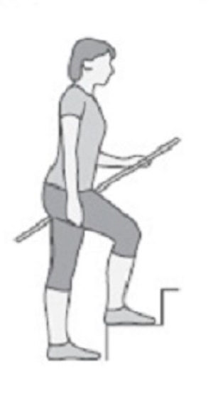 Start at the bottom step of a staircase. Lift your left foot up on the above stair. Bring it back by your right foot. Then lower your right foot, bringing it back to neutral. Repeat, this time raising your right foot on the above stair, back to neutral, then lowering you left foot. Hold onto the banister if necessary and continue to repeat this exercise until you tire.