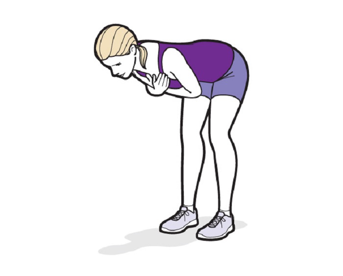 Stand with your feet at hip-width distance. Keep your arms crossed in front of your chest. Fold your torso forward, from the hip joint, until it is parallel to the floor. Keep your glutes and the back of your thighs engaged. Then slowly return to a standing position. Do this exercise for 15 repetitions.