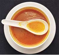 கூட்டு.மிளகுதானிய சூப் தேவையானவை: ஊற வைத்தபாசிப்பருப்பு – 100 கிராம், மிளகு – ஒரு டீஸ்பூன், பிரியாணிஇலை – 2, வெங்காயம்நறுக்கிய கேரட் – கால் கப், சீரகம்,மிளகுத்தூள் – தலாஅரை டீஸ்பூன், மஞ்சள்தூள் – ஒருசிட்டிகை, மிளகாய்த்தூள் – அரை டீஸ்பூன், கறிவேப்பிலை,கொத்தமல்லி – சிறிதளவு, எண்ணெய், உப்பு – தேவையானஅளவு. செய்முறை: கடாயில் எண்ணெய் விட்டு சீரகம்,மிளகு, பிரியாணி இலைதாளிக்கவும். நறுக்கிய வெங்காயம்,கேரட், ஊற வைத்த பாசிப்பருப்பு சேர்த்துநன்குவதக்கியவுடன், எல்லா தூள்களையும் ஒவ்வொன்றாகச் சேர்த்துக் கலந்துதண்ணீர்சேர்த்துக் கொதிக்க விடவும். இறக்குவதற்கு முன் நறுக்கியகொத்தமல்லி,கறிவேப்பிலை, உப்பு சேர்த்து ஒரு முறை கொதிக்க வைத்துஇறக்கி சூடாகப்பரிமாறவும். குறிப்பு: இது பசியைத் தூண்டும். வயிறு மந்தம் சம்பந்தபட்டபிரச்னைகளைத்தவிர்ப்பதற்கு இதை அருந்தலாம்.