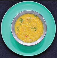 கலந்து சாப்பிடுவதால் உடலுக்குத்தேவையானசத்து கிடைக்கிறது. பருப்புக் கூட்டு தேவையானவை:பாசிப்பருப்பு – ஒரு கப், தக்காளி – 2, வெங்காயம் – 1,குடமிளகாய் – 1, பச்சை மிளகாய் – 2, சீரகம் – அரை டீஸ்பூன்,பூண்டு – 4 பல், மஞ்சள்தூள் – ஒரு சிட்டிகை, உப்பு, எண்ணெய் -தேவையான அளவு. செய்முறை: பாசிப்பருப்பை ஊறவைக்கவும். ஊறவைத்த பாசிப்பருப்பு, மஞ்சள்தூள், உப்புசேர்த்துபாத்திரத்தில் போட்டு நன்கு வேக வைக்கவும்.கடாயில்எண்ணெய் விட்டு சீரகம், நசுக்கிய பூண்டு தாளித்து,நறுக்கிய வெங்காயம், பச்சை மிளகாய் சேர்த்து நன்குவதக்கவும். நறுக்கியதக்காளி, குடமிளகாய் சேர்த்து வதக்கவும். தக்காளி வெந்துகரைந்ததும், வேகவைத்த பருப்பைச் சேர்க்கவும். எல்லாம் கலந்து வாசனை வந்ததும்இறக்கவும். குறிப்பு: சாதம், சப்பாத்திக்கு சரியான ஜோடி. புரோட்டீன் சத்து நிறைந்தது.தினமும் துவரம்பருப்பு சாம்பார் செய்வதற்கு சிறந்த மாற்று முறைக்