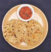 கொஞ்சம் சாப்பிட்டாலே வயிறு நிரம்பிய உணர்வு வரும்.முளைகட்டிய தானிய சப்பாத்தி தேவையானவை: பாசிப்பருப்பு,கம்பு, ராகி, கொண்டைக்கடலை – தலா ஒரு கப், மைதா – கால்கிலோ, எண்ணெய், உப்பு – தேவையான அளவு. செய்முறை:தானியங்கள் அனைத்தையும் முதல் நாள் இரவேதனித்தனியாகஊற வைத்துக் கழுவி, தனித்தனியாக ஒருதுணியில் கட்டி வைக்கவும். மறுநாள்காலையில், அவைநன்றாக முளை விட்டிருக்கும். முளைகட்டியதானியங்களைஒன்றாகக் கலந்து அரைத்து, உப்பு சேர்த்துக்கலந்து கொள்ளவும். மைதா மாவில்உப்பு, தண்ணீர் சேர்த்து,சப்பாத்தி மாவு பதத்தில் பிசைந்து அரை மணி நேரம் ஊறவிடவும். மாவை சிறுகிண்ணம் போல் உருட்டி அதில் அரைத்த தானியக்கலவையை கொஞ்சமாக உள்ளேவைத்து, சப்பாத்திக் கல்லில் மெதுவாகஉருட்டவும். தேய்த்த பரோட்டாக்களைதோசைக்கல்லில் போட்டு, இருபுறமும்கொஞ்சமாக எண்ணெய் விட்டு, வேக வைத்துசுட்டெடுக்கவும். குறிப்பு: முளைகட்டிய தானியங்களில் அனைத்துச் சத்துக்களும்ஒருங்கேகிடைக்கும். இதனை காலை, இரவு நேர டிபனாக அடிக்கடி சாப்பிட்டு வர…சத்துக்குறைபாடுகள்
