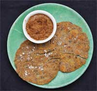 இல்லாததால் டயட்டுக்கும் சத்துக்கும்உகந்தது. தினை மாவு அடை தேவையானவை: தினை மாவு -ஒரு கப் (பெரியமளிகைக் கடைகள், சூப்பர் மார்க்கெட் மற்றும்காதிகிராஃப்ட் கடைகளில் கிடைக்கும்), கடுகு-சிறிதளவு,வெங்காயம் – 2, பச்சை மிளகாய் – 4, கறிவேப்பிலை -சிறிதளவு, கொத்தமல்லி – சிறிதளவு, தேங்காய்துருவல்டேபிள்ஸ்பூன், கடலைப்பருப்பு, உளுந்து – தலாகால்கப், எண்ணெய், உப்பு – தேவையான அளவு செய்முறை:கடலைப்பருப்பு, உளுந்து இரண்டையும் தனித்தனியாகஊறவைக்கவும். கழுவி, நன்கு அரைத்து, தினை மாவுடன்சேர்த்து அடை மாவுபதத்தில் கலந்து கொள்ளவும். கடாயில் எண்ணெய் விட்டு கடுகு,நறுக்கியவெங்காயம், பச்சை மிளகாய், கொத்தமல்லி, கறிவேப்பிலை தாளித்து,அதைஅடை மாவில் கொட்டிக் கலக்கவும். தேங்காய் துருவல். உப்பு சேர்த்துக்கலந்துகொள்ளவும். இந்த மாவை, தோசைக்கல்லில் அடைகளாக வார்த்துஇருபுறமும்சிறிதளவு எண்ணெய் விட்டு சுட்டு எடுக்கவும். குறிப்பு: இந்த அடை நிறையநேரம் பசி தாங்கும். அனைத்துவிதமான சத்துக்களும்இதில் அடங்கியிருப்பதால்ஊட்டச் சத்து மிக்க சிறந்த பலகாரம்.
