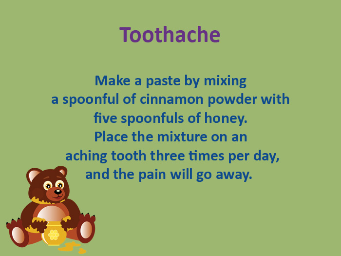 A mixture of honey and cinnamon has been considered by many cultures around the world to be a medical cure since time immemorial. Today's scientists acknowledge honey as being highly effective at treating a whole range of illnesses. Using honey for medical purposes has no known side effects, which makes it a great alternative to try. Modern science even claims that honey doesn't pose a threat to diabetics in spite of its sweetness. A few years ago, Canadian journal Weekly World News published a list of illnesses that can be cured using honey and cinnamon, citing evidence garnered in various medical trials: