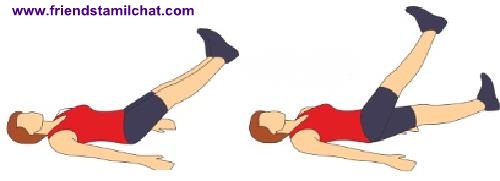 2. Raise your feet about 30cm (12 inches) off the floor. Control your core muscles and scissor your legs up and down for 10 repetitions.