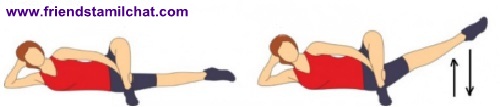 3. Use your inner thigh muscles to lift your right leg upwards (about 15cm or more). Hold for a couple of seconds then slowly lower your right leg back. Repeat for 10 to 20 times on each side.