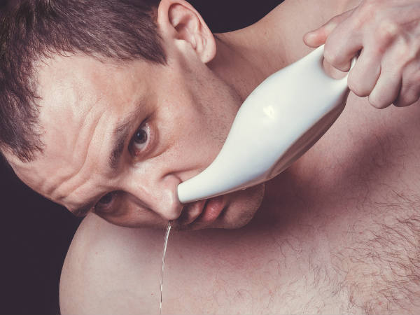 Commonly known as the Neti Pot therapy, rinsing nose with salt water helps in decongesting the nose and in clearing out the mucus. Add two teaspoons of salt to warm water, fill up the neti pot with it and then slowly put this in one of your nostrils and tilt your head, and allow the water to drain out through the other nostril.