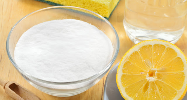 Mixing baking soda and lemon juice creates the perfect home cleaning agent. The mixture can be used for cleaning pots, pans, kitchen cabinets as well as for removing greasy residue.