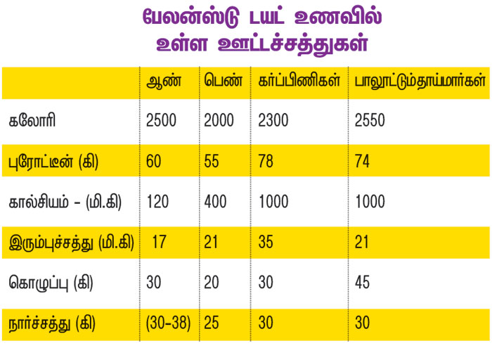 இப்படி, அனைத்துச் சத்துகளையும் அளவோடு தரும் பேலன்ஸ்டு டயட் பற்றி விளக்குகிறார் டயட்டீஷியன் பத்மினி வெங்கடேஷ். பேலன்ஸ்டு டயட்டுக்கான ரெசிப்பிகளைச் செய்து காட்டுகிறார் சமையல் கலை நிபுணர் அன்னம் செந்தில்குமார்.