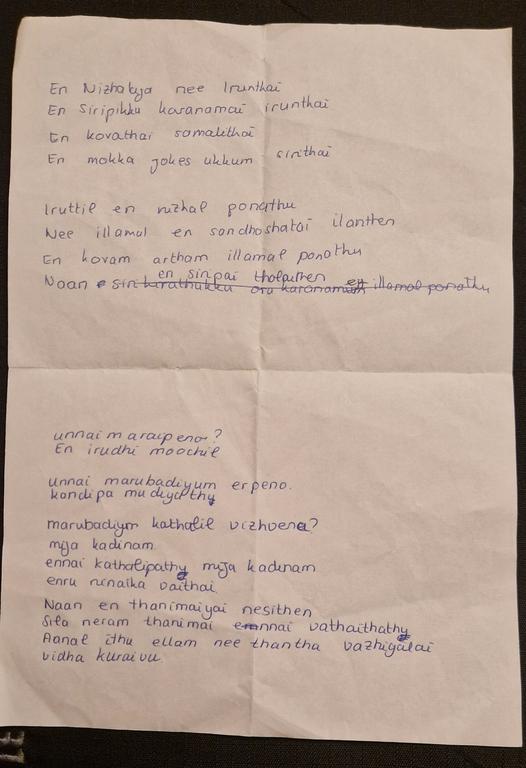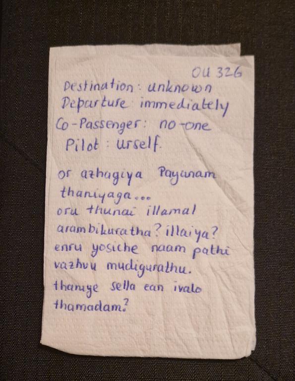 I personally don’t know you, but your poem “Or azhagiya payanam thaniyaga” gave me so much depth. I felt personally connected with every line you wrote. It’s short, crisp, and it made me reflect on myself. As someone travelling alone with full hesitation, this poem relates to me deeply.