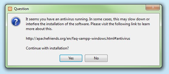 Note: Before installing XAMPP, it is advisable to disable the anti-virus program temporarily
