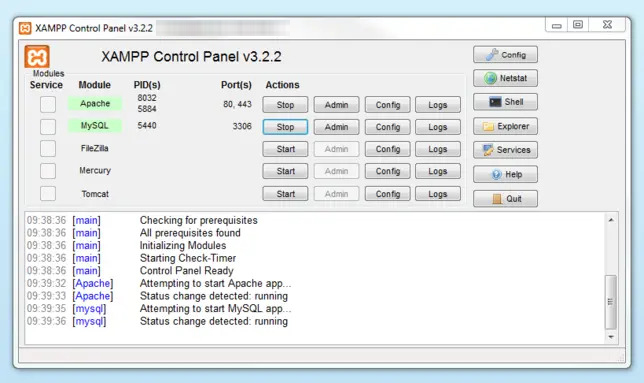 Controls for the individual components of your test server can be reached through the XAMPP Control Panel. The clear user interface logs all actions and allows you to start or stop individual modules with a single. The XAMPP Control Panel also offers you various other buttons, including: