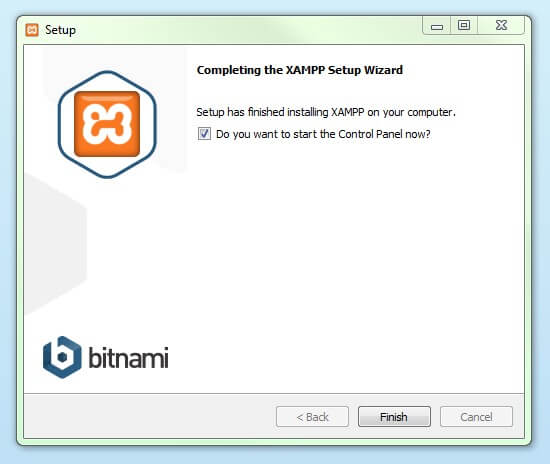 Note:By clicking on 'finish', the XAMPP Setup Wizard is completed