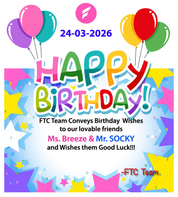 Friends Tamil Chat Team Conveys 🎁 Birthday (24-Mar-2026) wishes 🎁 to our lovable friends ⭐ Ms. BREEZE & Mr. SOCKY ⭐ and wishes them Good Luck