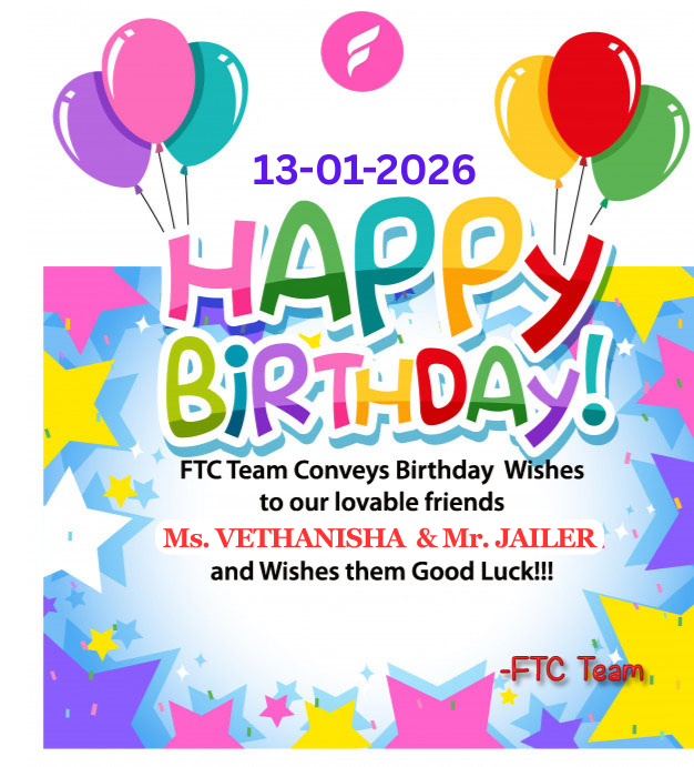 « Last post by FTC on Today at 12:06:32 AM »Friends Tamil Chat Team Conveys 🎁 Birthday (13-JAN-2026) wishes 🎁 to our lovable friends ⭐ Ms. VETHANISHA ⭐ and Mr. JAILER and wishes them Good Luck..